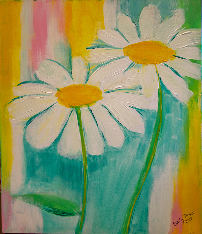 Emily experiments with movement, light and colour to create vibrant pieces that connect with the viewer. For Emily, art is a process of reciprocity, with the emotion and energy she invests in her pieces finding expression in the response of others to her work.